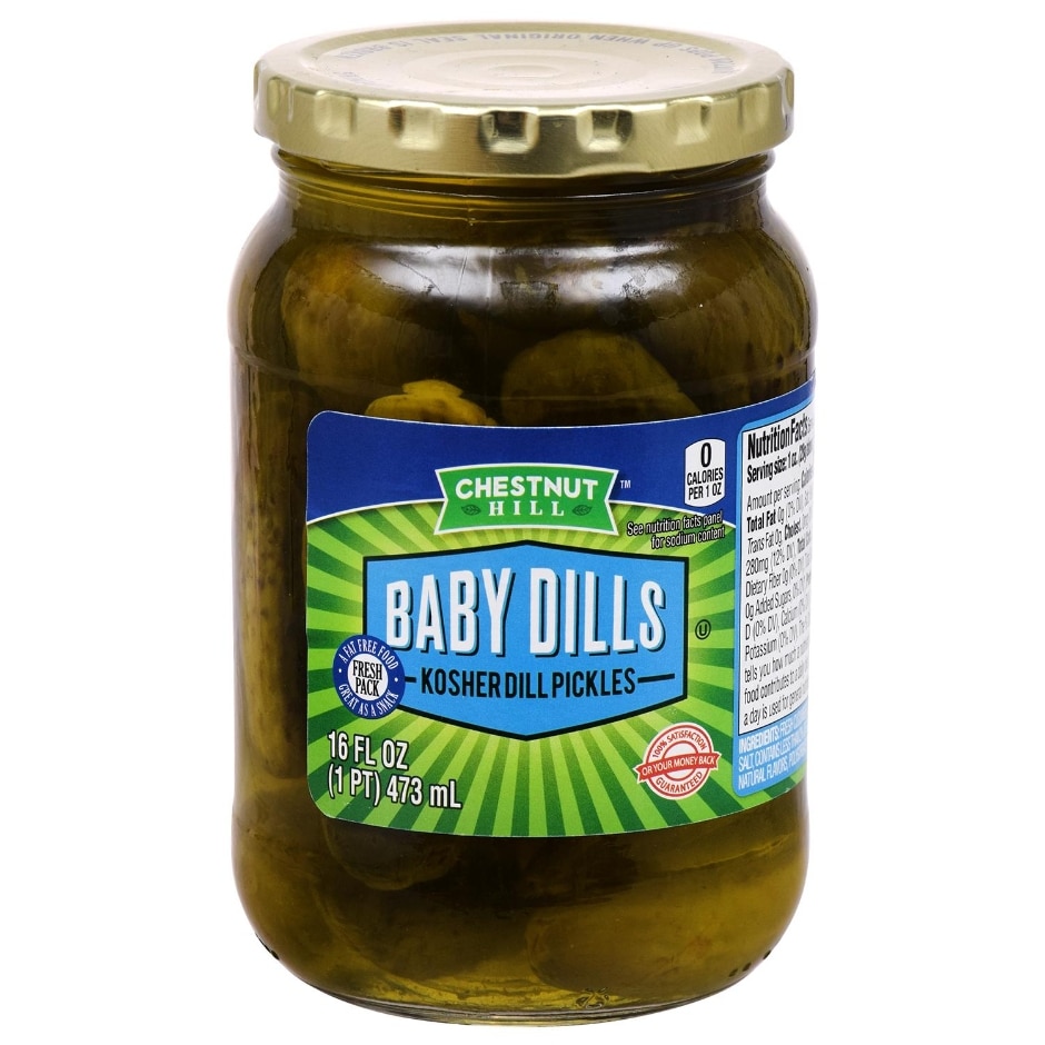 Kosher in regard to pickles is a marketing label rather than a seal of approval. Kosher in regard to pickles is a marketing label rather than a seal of approval. Fill the jar with the brine. These whole dill pickles contain 0 calories per serving. Percentages listed are percentage of daily value. Vlasic Kosher Dill Baby Whole Pickles deliver a delicious crunchy and classic dill flavor. Our most popular pickles BG Kosher Dills are a cut above the rest.