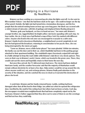 Helping In A Hurricane By Readworks Answer Key